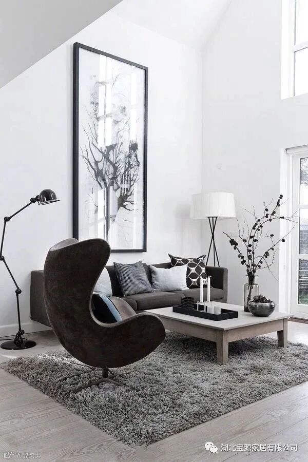 大白墙与灰色地板的极致对比,为你自由调配出一个落落大方的时尚窝。