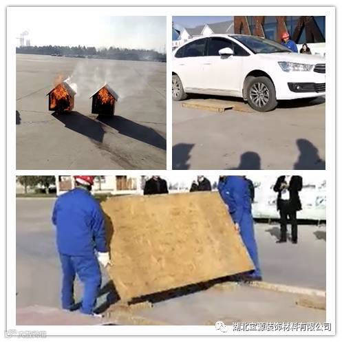 随后带领经销商们参观了公司原材料生产基地宝源木业,宝源木业于2010年建成了亚洲第一条OSB生产线。在讲解员的带领下参观了宝源木业三期的精木板生产线及产品展示中心。在工厂的展厅看到了各种精木板制作的产品,只要是木板能做的产品,精木板同样也能做。在展厅外现场进行了OSB板材的汽车碾压和防火实验,让各位经销商现场感受到了OSB板材的硬度和防火耐高温。一流的生产线加上过硬的原材料让经销商们更加相信宝源。