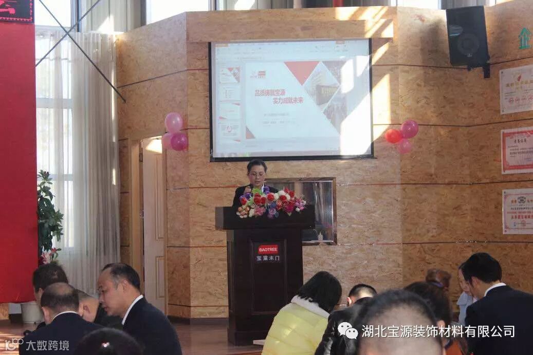 招商会上,公司营销总监陈金凤致欢迎词,欢迎全国各地远道而来的经销商。并对公司的概况、发展历程、公司优势、培训体系、服务支持、加盟政策做了全面的详细的介绍。过硬的品牌实力、完善的加盟支持,为在场意向的经销商们选择宝源地板·宝棠木门提供了充足的信心。