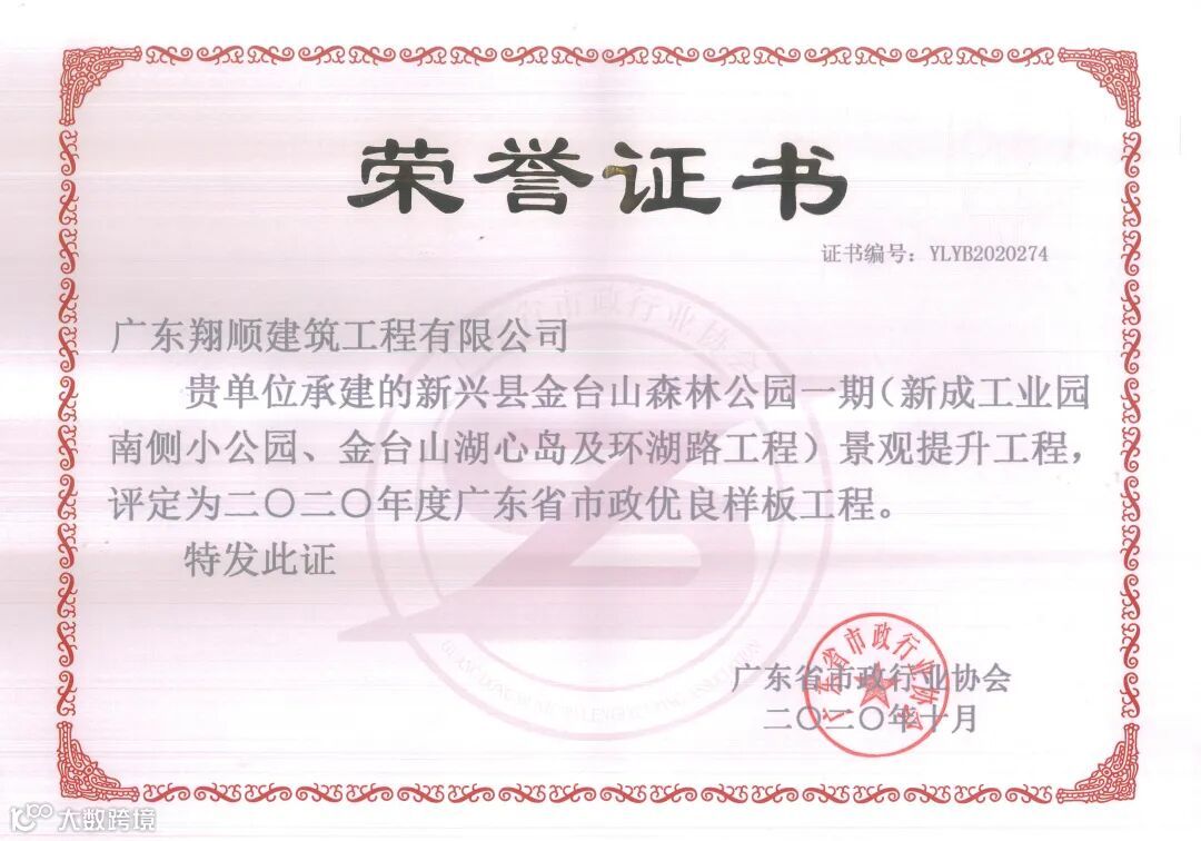 10月,我司承建的金台山公园工程,被评定为“2020年度广东省市政优良样板工程”,此殊荣的获得是对金台山公园工程的高度肯定与赞扬,充分显示了该工程标准化、规范化、精细化管理的重要成果。