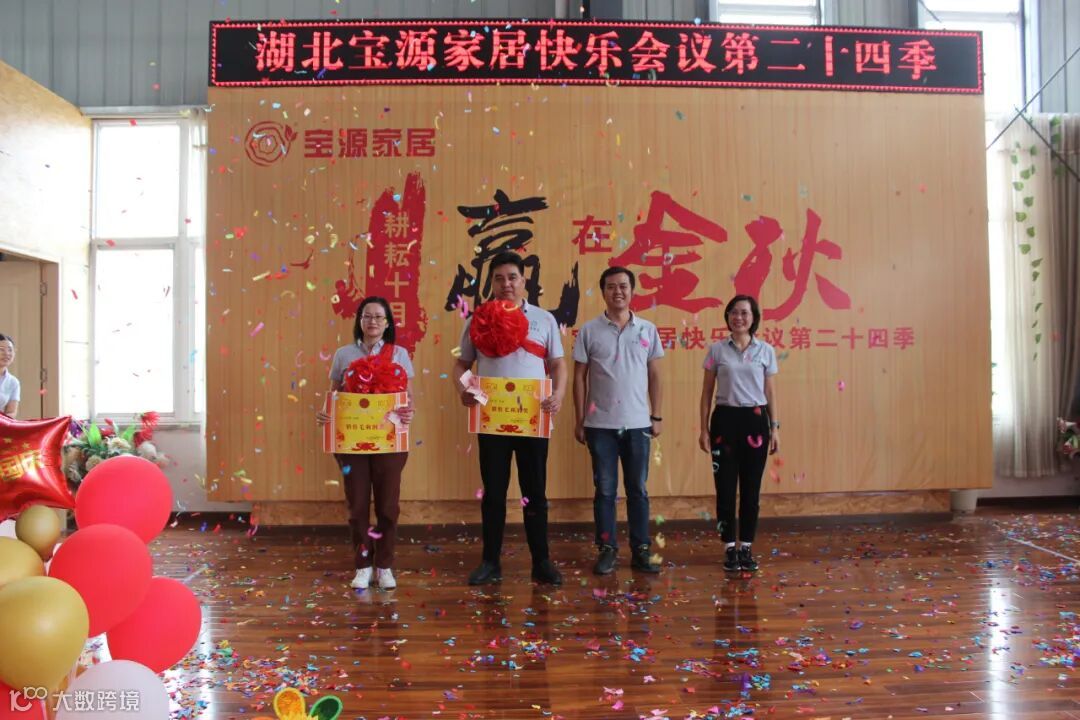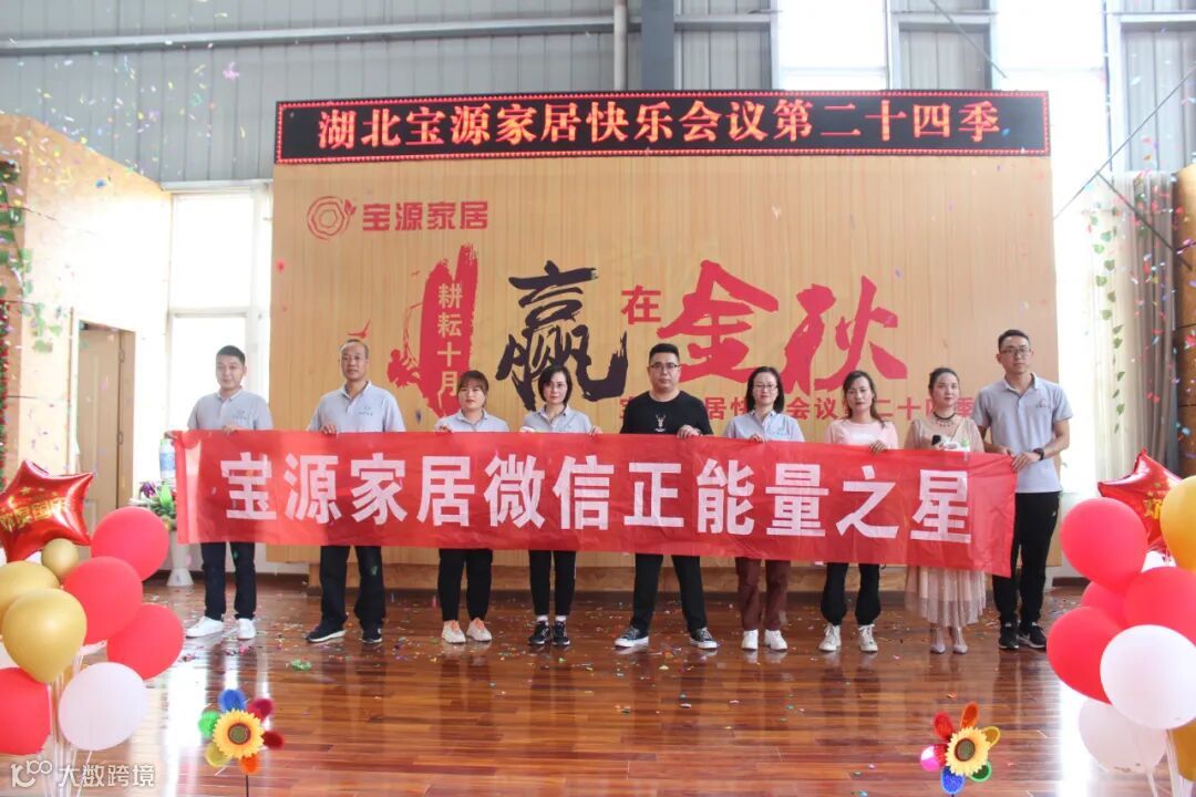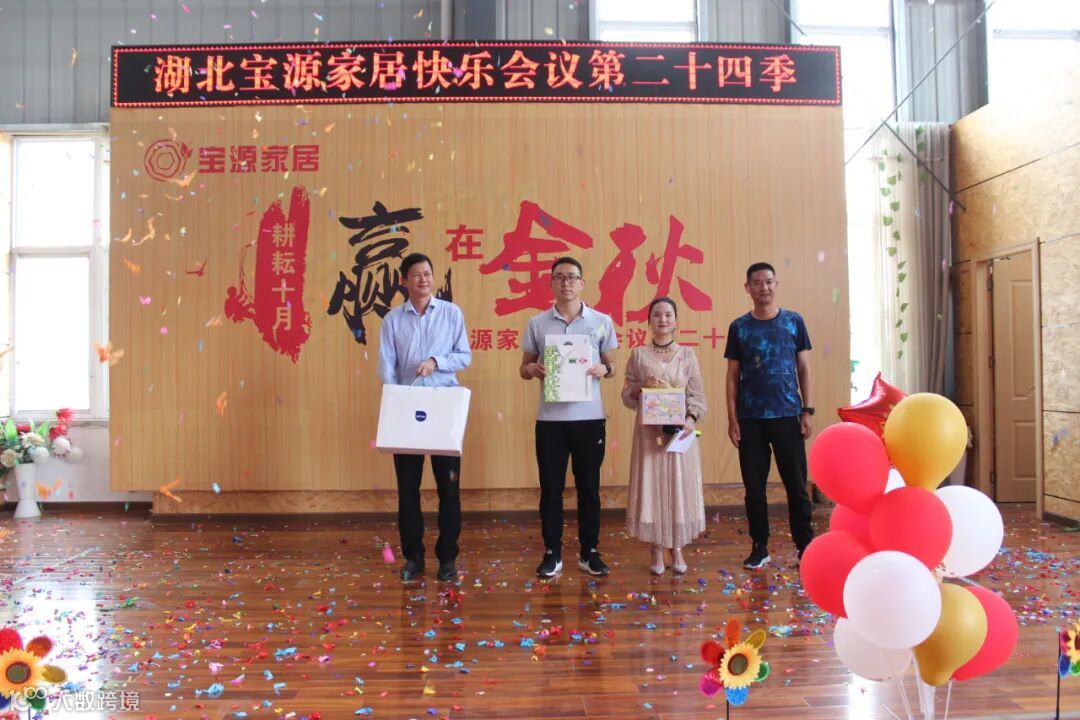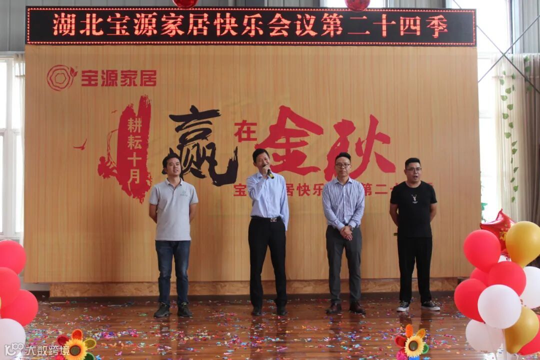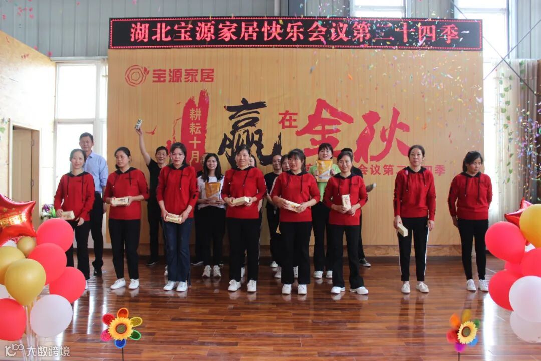 9月24日,湖北宝源家居有限公司召开主题为耕耘十月 赢在金秋第24季快乐会议,会议内容主要有风采展示、感恩礼、诵读企业文化、颁奖、小游戏等,通过快乐会议展示宝源团队的精神面貌,让员工收获幸福感、荣誉感、快乐感、归属感。会上,公布了各销售团队10月份销售任务目标。