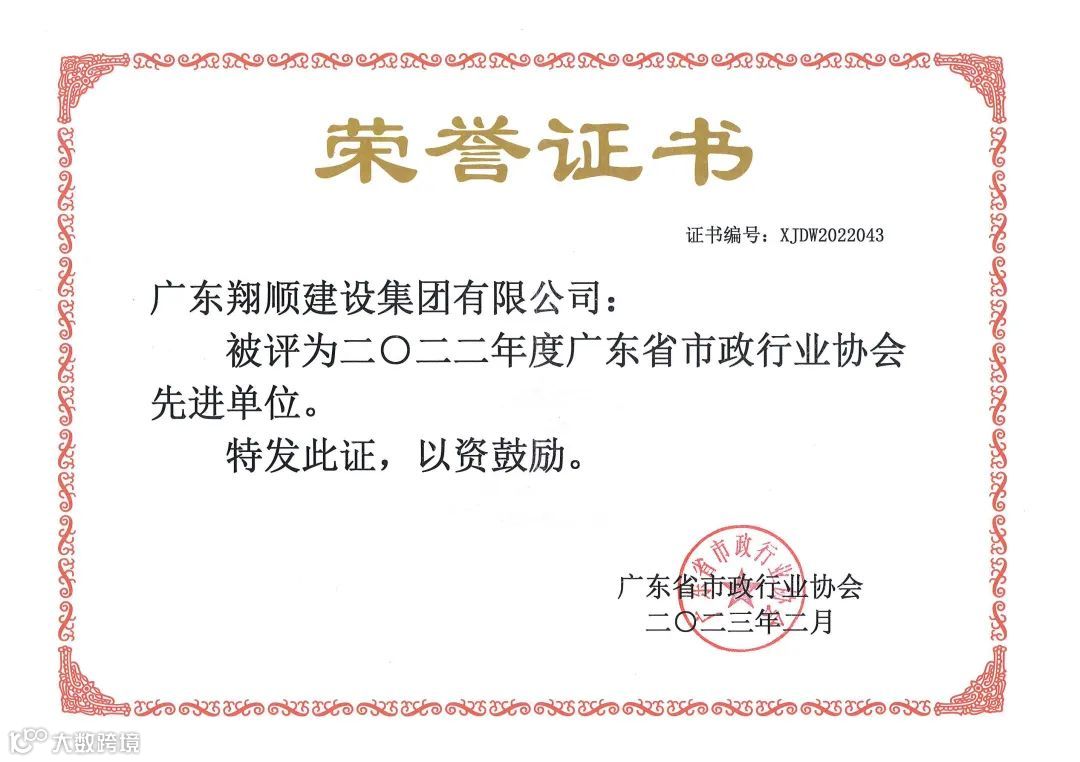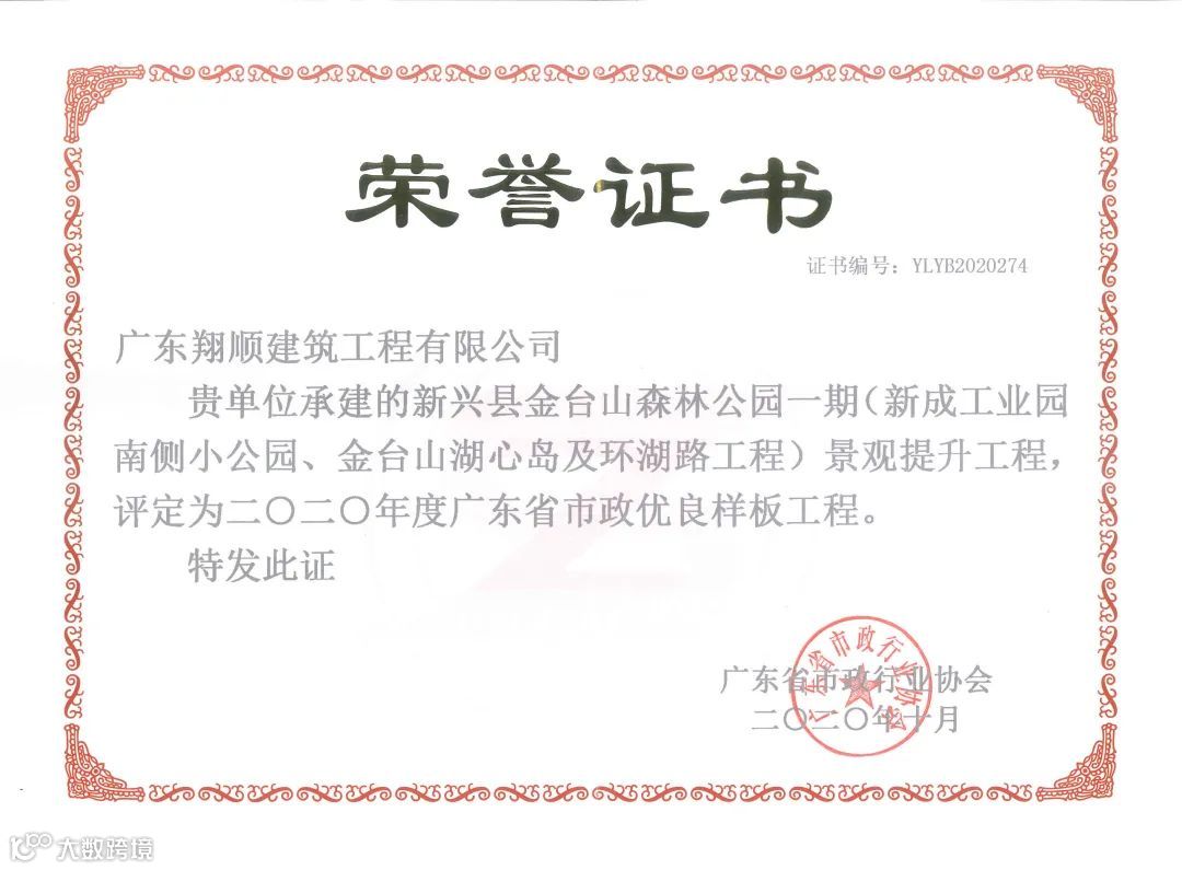 翔顺建设近年来积极参与市政项目建设,争创省市政优质工程奖项,促进项目管理水平提升,先后承建了一批省、市优质市政工程,如承建的金台山公园、新兴县广兴大道东段道路升级改造工程、新兴县城区第二污水处理厂及配套管网工程被评定为广东省市政优良样板工程;新兴县旧城活化一期工程、新兴县城区第二污水处理厂及配套管网工程和新兴县广兴大道东段道路升级改造工程获得广东省市政工程安全文明施工示范工地等,并且公司近两年连续获评“广东省市政行业协会先进单位”。
