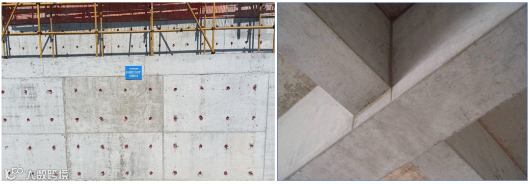 混凝土观感质量内坚外美,密实整洁,面层平整,棱角整齐平直,梁柱节点、墙板交角线面顺直。