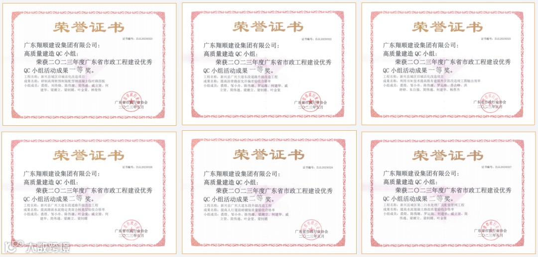 在广东省市政行业协会的支持下,在市县住建部门的指导下,翔顺建设集团项目施工过程中运用了大量的新技术、新材料、新工艺,并积极开展QC技术攻关,获得多项广东省市政工程建设优秀QC小组活动成果及专利成果,为加快施工进度、降低工程成本、提高工效、创精品工程提供了有力的保障。这充分展现了我司强大的技术创新能力与优秀的工程建造水平,也彰显了公司在市政重点工程项目的组织、实施和保障方面具备了丰富的建设经验和雄厚的建造实力。