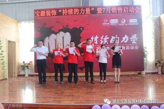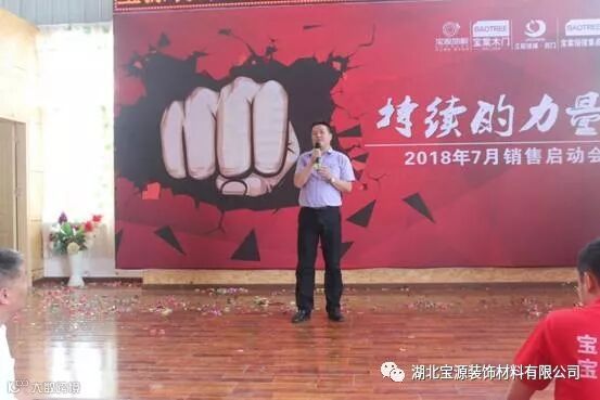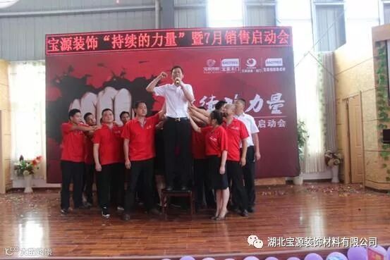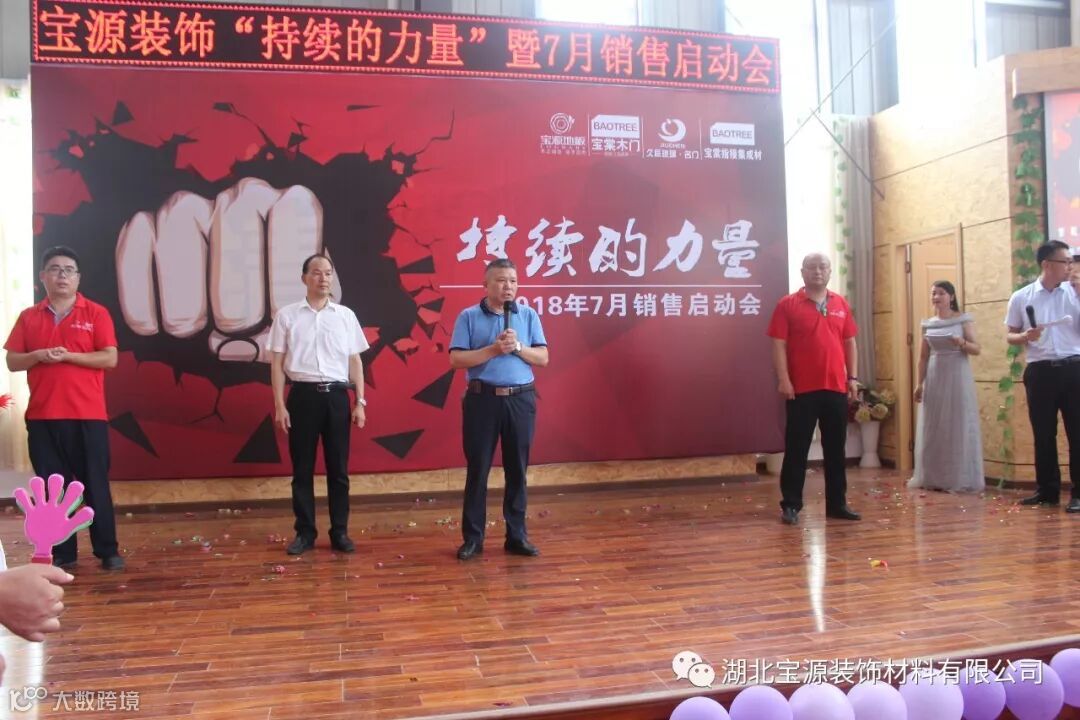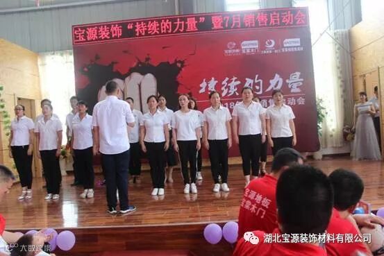 告别了火红而激情的六月,又迎来了生机盎然的七月。新的一月,新的目标,新的挑战。6月25日下午宝源装饰在新展厅召开了以“持续的力量”为主题的7月销售暨二玖零启动会议。持续可以将平凡变为非凡。公司从2018年2月正式导入玖零培训系统,在公司董事长朱总的带领下超额完成了一玖零制定的目标。这就是目标的力量,在二玖零中不急不停持续完成第三季度目标。此次会议邀请到武汉鸿连实业李总及团队、玖零落地王杰老师及助理为宝源加持能量。