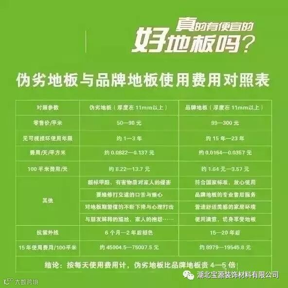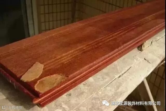 印花板是多采用劣等BC级木材做基材,地板质量不稳定,木纹不自然......同时,由于漆面涂覆工序少而导致漆面易脱落、开裂。