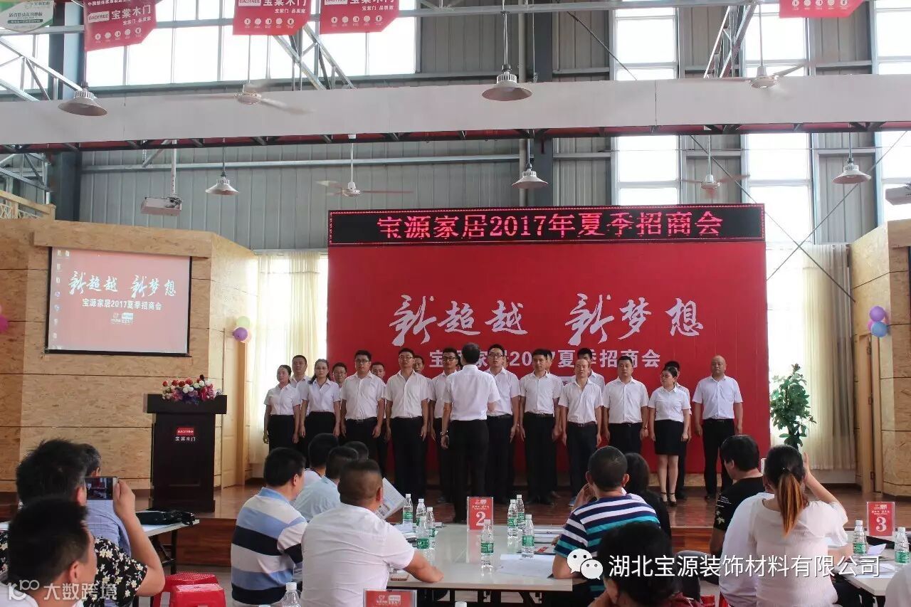5月22日,宝源家居2017夏季招商会在工厂隆重举办!宝源装饰总经理朱玉朋、营销总监陈金凤、宝源各区域销售经理、媒体记者以及二十位准经销商参加了本次会议。