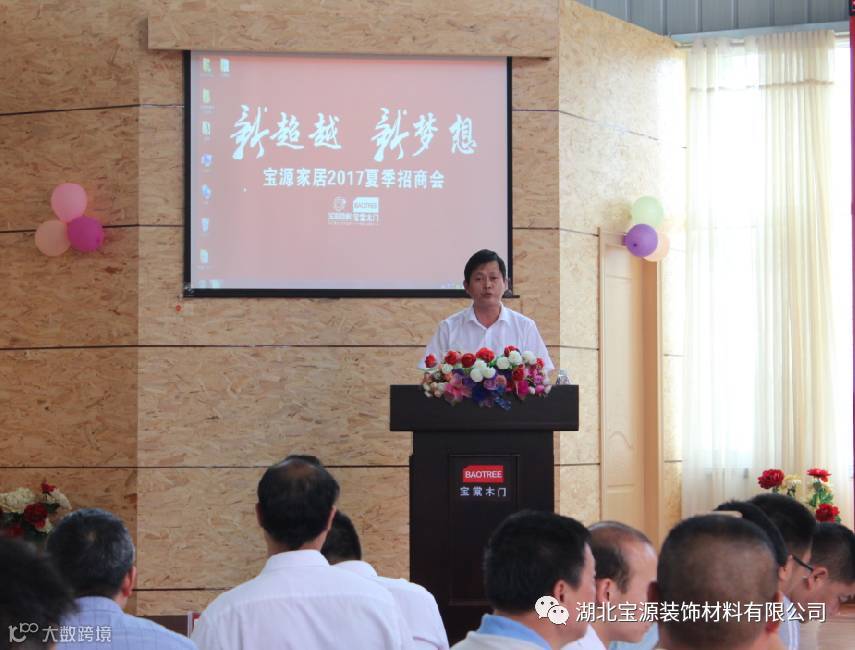 招商会上,宝源装饰总经理朱玉朋就宝源品牌和公司历程做了详细介绍,自2016年营销战略思路升级以来,宝源通过制定推广科学有效的品牌宣传战略,在原有基础上,横向不断扩大品牌宣传阵地,纵向不断更新产品创新与品质质量。线上宣传线下体验,全方位塑造深远品牌影响力,逐步扩大宝源品牌号召力,让更多的消费者享受宝源带来的绿色健康家居服务。
