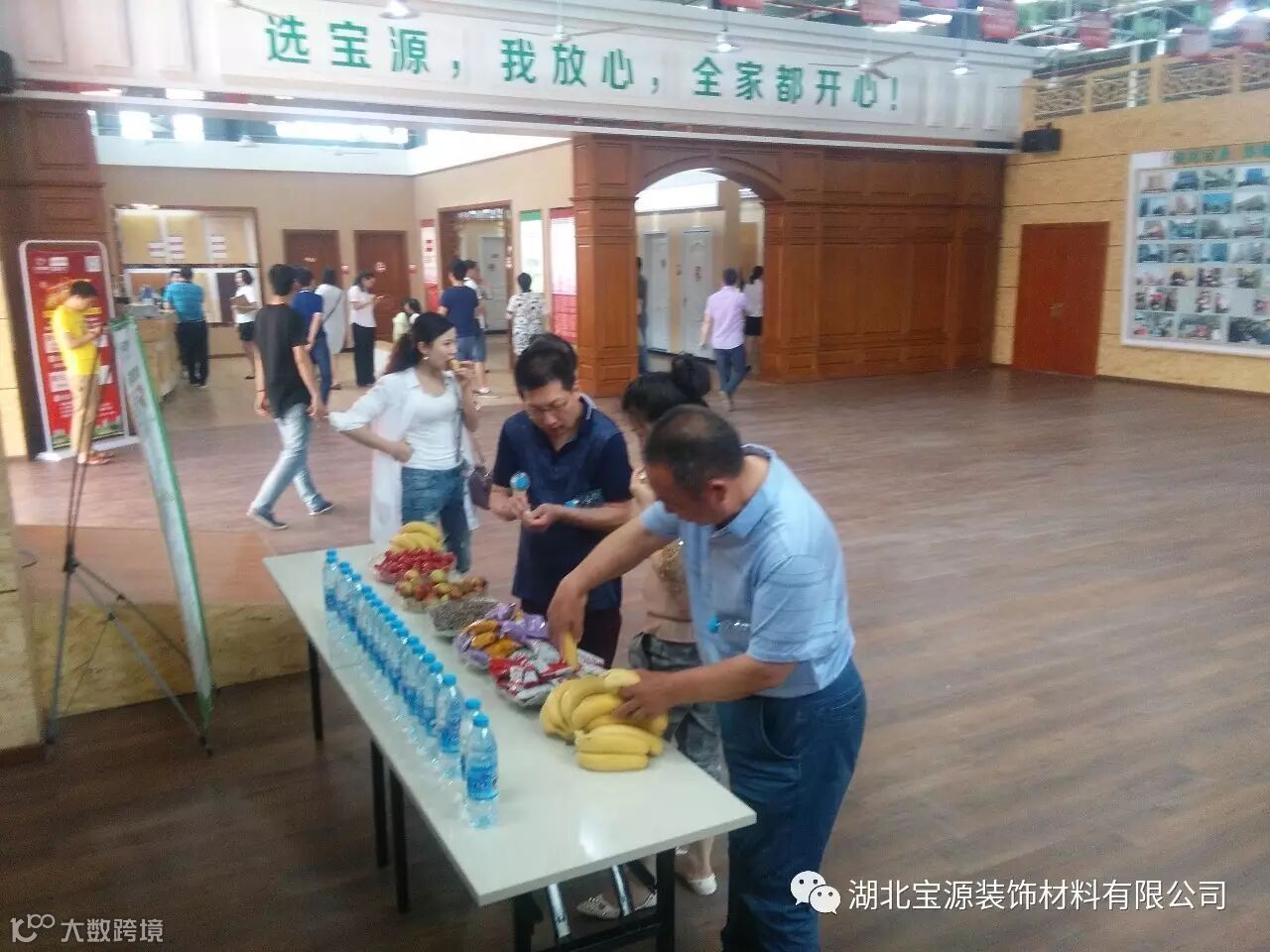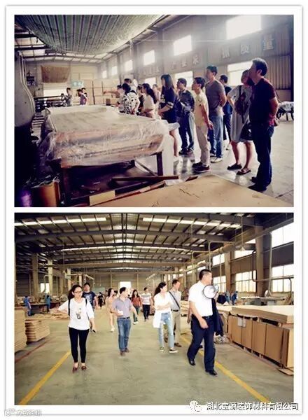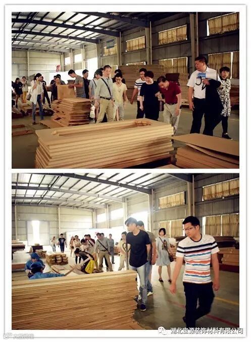 一行大部队先去参观了宝源木业的工厂,宝源荆门直营店钟经理拿着大喇叭跟大家详细介绍工厂生产线,到了宝源精木板产品展示中心,我们下车进去参观精木板做的地板、木门、家具等产品,还亲眼目睹了“煮不烂”、“游的欢”、“木香味”这些宝源精木板的特性。