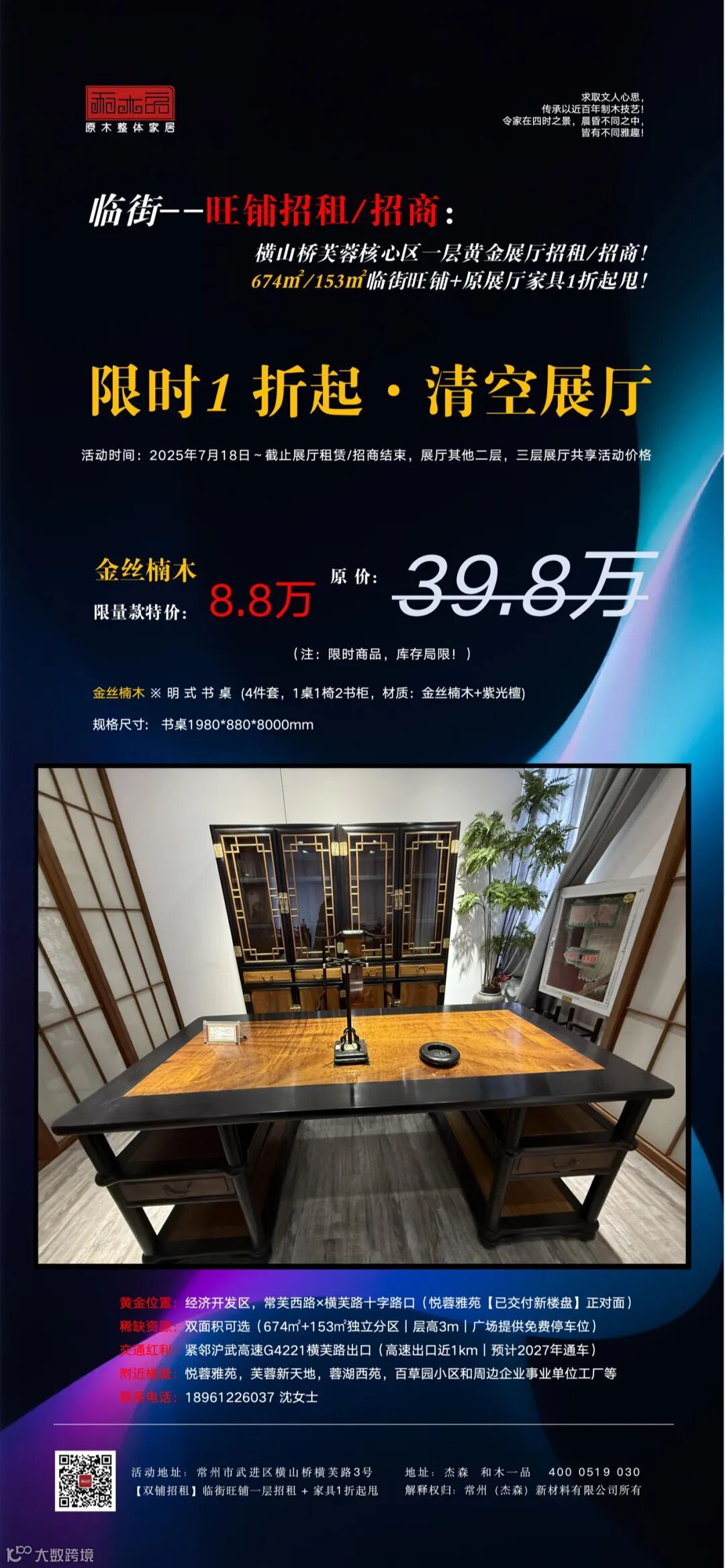 674㎡/153㎡临街旺铺+原展厅家具1折起甩!