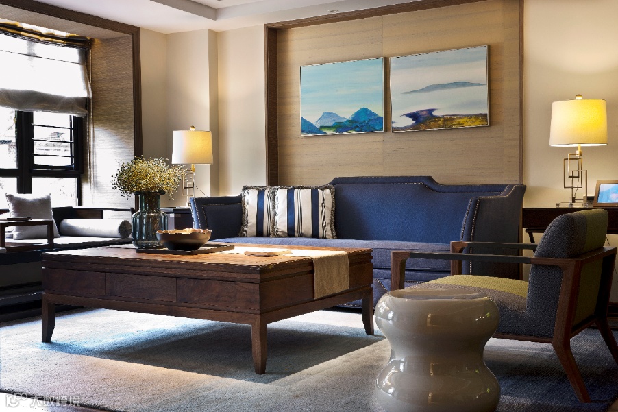 原木色这种大自然的色彩让人倍感亲近,渐变的蓝色则像是一层层的海浪抚慰着心灵,让人平静。在这里,你可以看到新中式的平和,美式的随性,现代的简约,而不是刻意的强调风格,刻意的追求造型,只是以最自然的材料,最少的装饰,做最适合的设计。