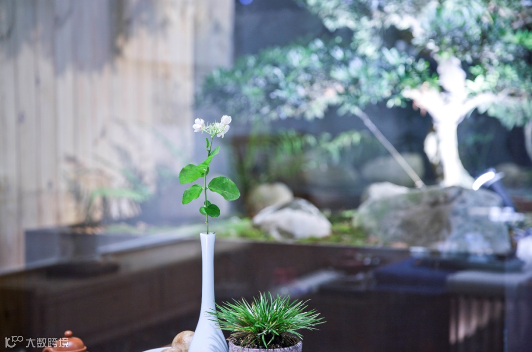 在这个木色的空间里,通过“花”、草、树、水、石、鱼来营造人与自然的接触,这是设计师对自然、对生命孜孜不倦的追求。