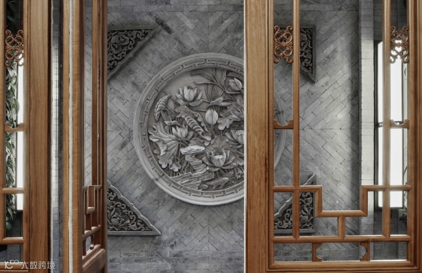 一圆窗造型,又似一轮皎洁的明月,衬以窗前遒劲挺拔的松枝、映照在凹凸肌理的青石墙面上,便有了“明月松间照,清泉石上流”的诗意。
