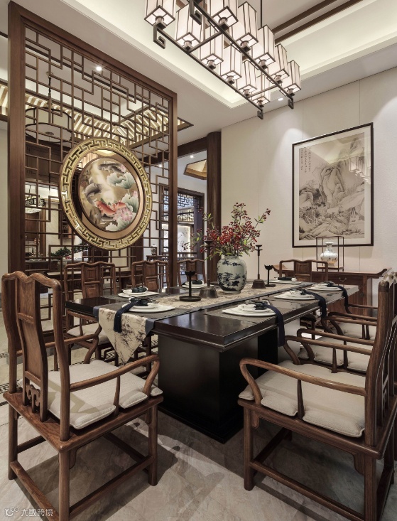 将中国传统疏、密、隔、透的造园手法引入室内空间,整合空间秩序,把握空间节奏,使之开合有序,进退自如。