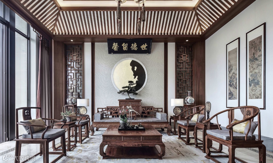 丰富的空间层次递进,横向通透、纵向通达,体现出“中正平和”的东方哲学思想,呈现中式雅生活的格调。