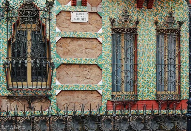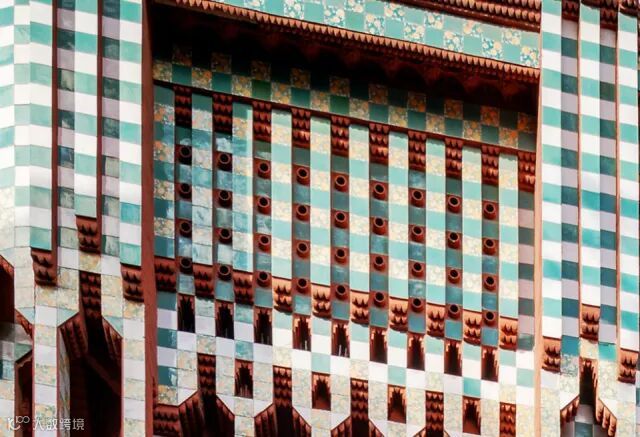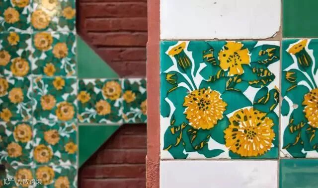 外墙瓷砖上绿底黄花的图案则取材自金盏菊,在墙面转角处为了打破传统建筑简单枯燥的直线交角,巧妙利用红砖排列形式,搭配瓷砖装饰。正如高迪自己所说“直线属于人类,曲线属于上帝”。