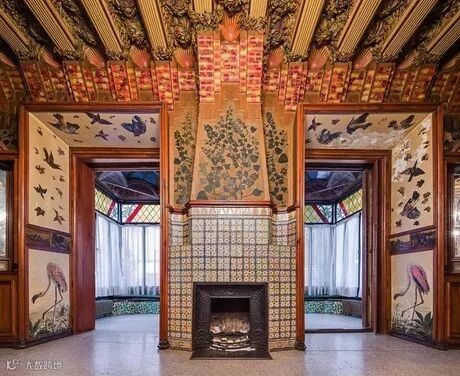 建筑内部,无论是墙面还是天花板都绘有蕨类叶子、玛格丽塔花和鸟类动物等,这些元素都来源于自然,不仅成为了装饰手法,也为内外部空间建立了连续性。