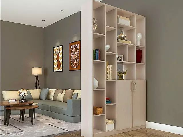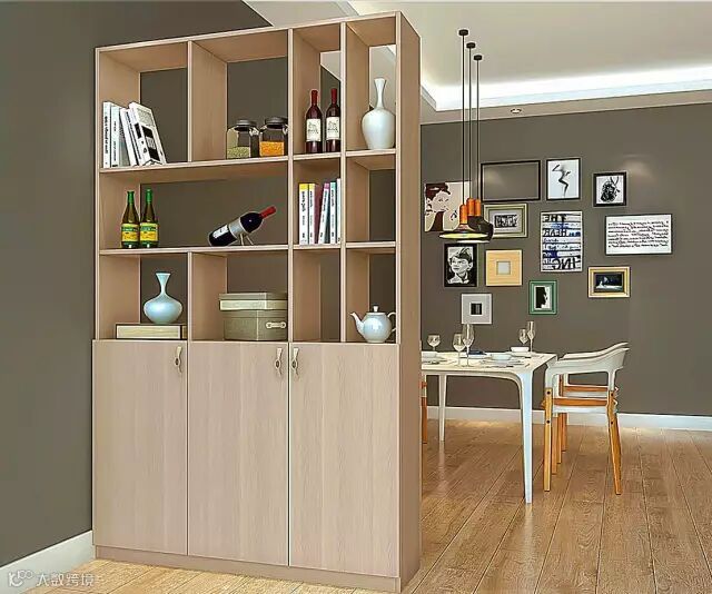 常见的酒柜放置方式,是利用酒柜作为餐厅与其他空间的隔断,不仅可以成为日常用品的收纳柜,而且有很好的装饰效果,使得整个客厅装饰更加丰满起来。