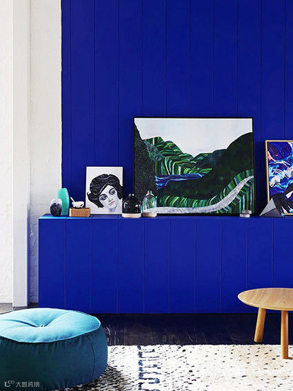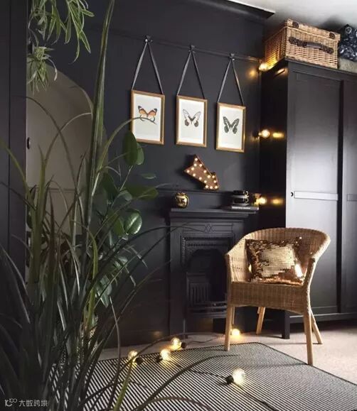 火焰黑色是黑色和海军蓝色的混合,这两种经典色调糅合出一种梦幻般的效果,用这种颜色做背景墙,就像一块夜色融成的幕布,可以完全凸显出其他的装饰元素和色彩。