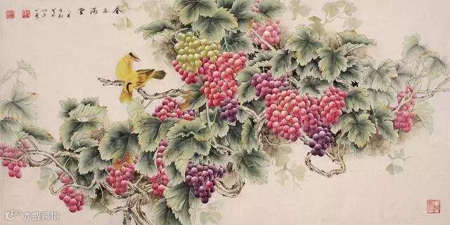 晚唐五代花鸟画出现“黄家富贵,徐熙野逸”两种风格流派,标志着中国花鸟画进入成熟阶段。