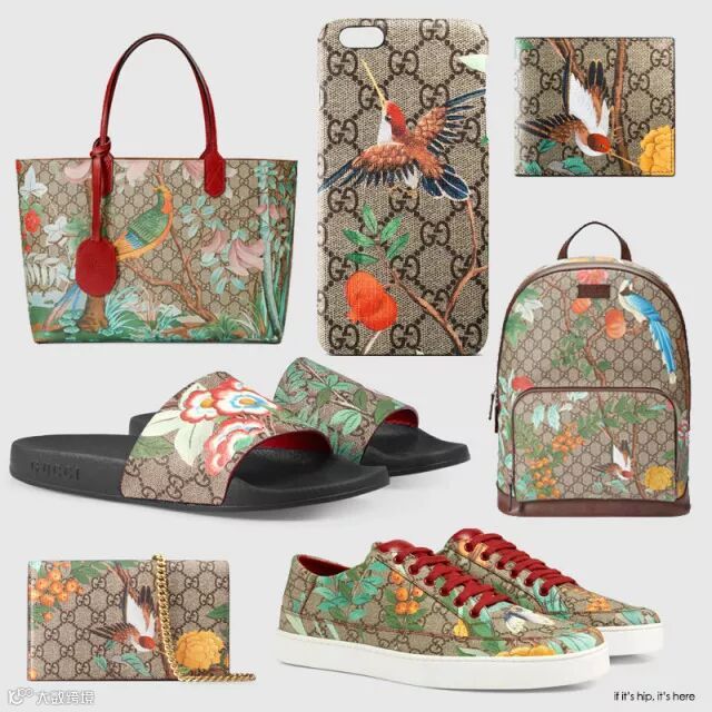 花鸟元素不仅受画家喜爱,也被国际大牌GUCCI所热爱。某年的“天”系列中,随处可见花鸟元素,创意总监Alessandro Michele从中国传统的花鸟画中汲取灵感,将画所展现的风格精丽,优雅如诗,尽力通过作品展现出来。