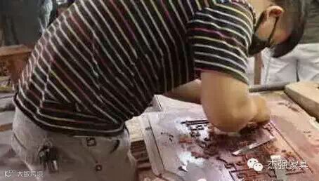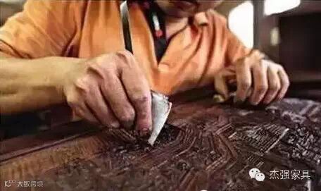 红木家具中对手工雕刻的要求非常严格,在雕刻车间,每一名雕刻工在雕刻时都要集中精力,一旦刻错一刀,整张木板就没法修补了,对红木家具成品的质量影响很大。雕刻出的成品还要求:花根清晰,花形活泛如真非真,非真胜真,线脚一统,上下吻合,左右相称,凹凸有序,平光无疵等等,红木家具中木工工艺和雕刻工艺相结合,才能体现珠璧共辉、红花绿叶和异工同曲的效果。