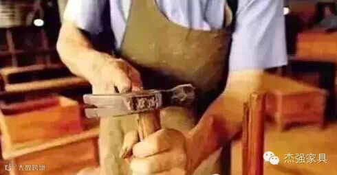 组装以后需要对家具表面进行刮磨处理,这是红木家具制作过程中一个重要步骤。我们看到的家具很多型面都需要纯手工打磨,一般先用刮刀刮磨,再用越来越细的砂纸分多次进行打磨,一直要把较粗砂纸的痕迹磨掉。刮磨后的半成品家具线条流畅,表面平坦无波浪感,纹理流畅清晰,手感也变得平滑舒适。