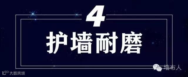 墙布的耐磨性比普通墙纸好得多,一般的长纤织物摩擦几十次不成问题。由于墙布是由纤维合并和交织而成的,成千上万的纤维聚合在一起,其牢度和强度是巨大的。因此,一旦将整块的墙布粘贴在墙上,无疑给整个墙面又增加了一层软钢丝网。墙布的耐磨性和强牢度,对墙面的保护作用就不言而喻了。