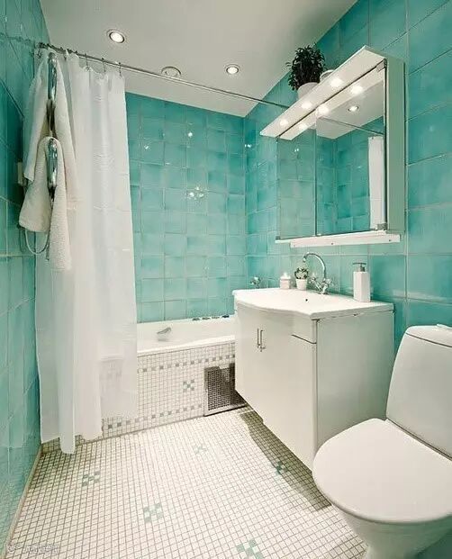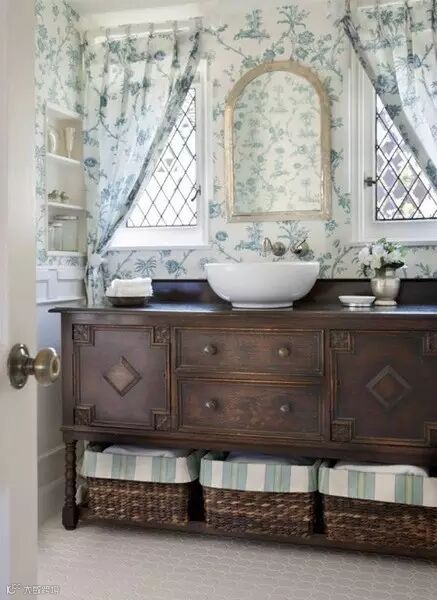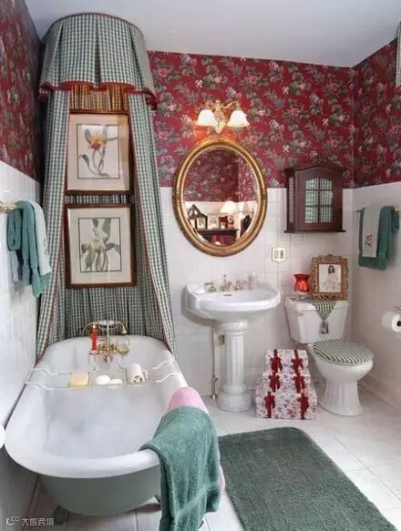 比如:拉上一个帘子就可以有效防止水汽和潮湿,像这样搭配瓷砖和墙纸是不是很完美!