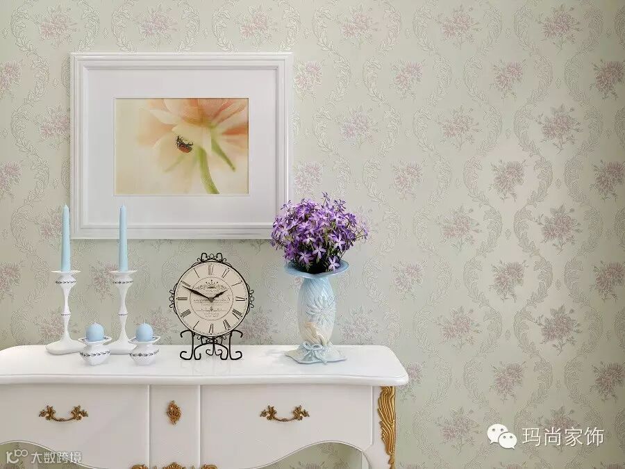 有气质的家:小碎花田园风格壁纸,给人端庄而不呆板的感觉。