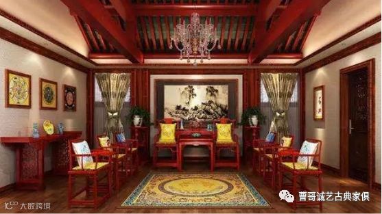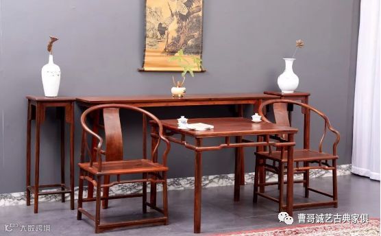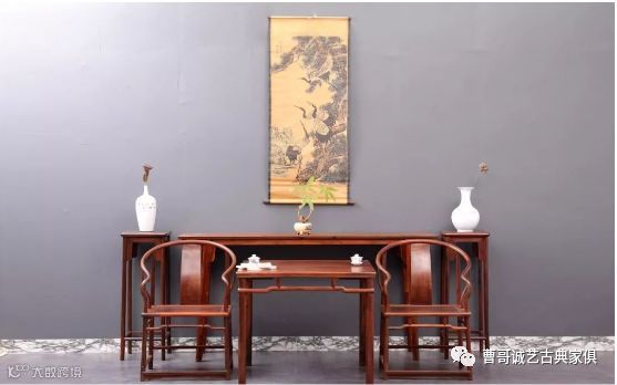 从很多影视剧中我们可以看到,在大户人家的厅堂里,常常出现一种由四仙桌或八仙桌、扶手椅或太师椅成对,加上长条案和花架等组合而来的家具。但凡有点基本常识的人,都知道这种家具叫中堂。然而,恐怕没几个人注意到,传统家具的应用中,组合型家具仅中堂一例,别无二类。中堂家具形成的布局,由多组合的结构、结合室内的空间环境而来,因此上,与其他客厅类家具相比,中堂的形式感更强,陈设功能更加明显,所以,中堂家具在古典家具大家族中,显得有些特殊。如果说:书房类家具是红木古典家具的最高表现形式,那么中堂家具则应该属于“最能从触感上影响感情的家具”。