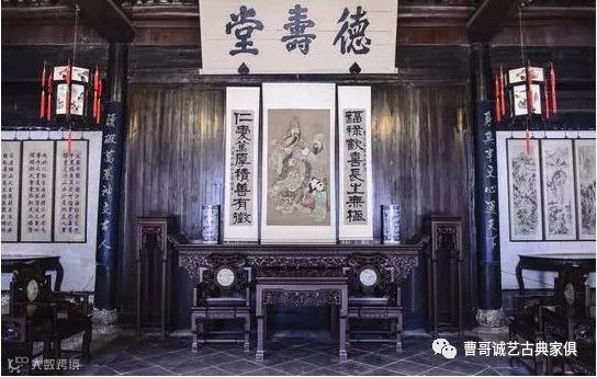 中堂既是重要客人的接待之处,也是家庭议事的主要场所,更是对子孙进行人生立志教育和伦理道德感化培育的中心。一个家的厅堂装饰设计和器物摆设,印证了这家人的伦理道德操守,更证实了中华民族优秀传统的教化意识无处不在,源远流长。