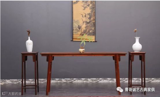中堂家具在诸多红木古典家具消费中,极少成批生产,门店销售达成率偏低,多通过询价和订制完成。这是因为堂屋会客、行礼仪和佛堂的功能,决定着中堂家具日常的使用效率实际并不高,陈设其中的中堂家具跟“王谢堂前燕”一般,无法成为普通人家的必用品而“飞入寻常百姓家”,可是另一方面,作为从古至今大户人家的必需品,登堂入室的中堂家具,并不因使用者稀少,而降低它自身作为家具重器的要求。因为中堂家具属家居系列的高配置,构件多,体裁大,导致中堂家具选材用料的要求特别全面。耗材用料多,用料大,各构件纹理色泽的搭配极其讲究,组合后即要符合整体体量的外观要求,还能满足各构件单独使用的功能诉求,简而言之就是:既协调又统一。
