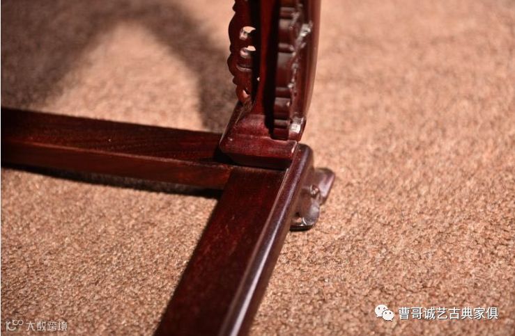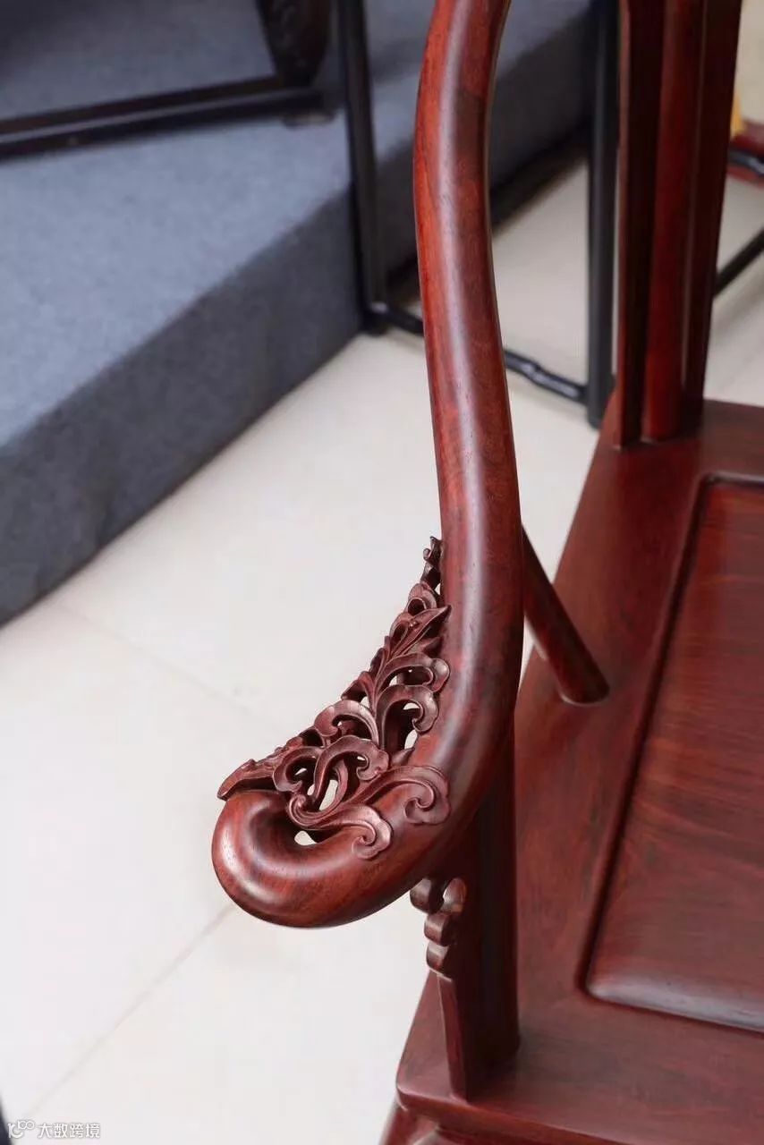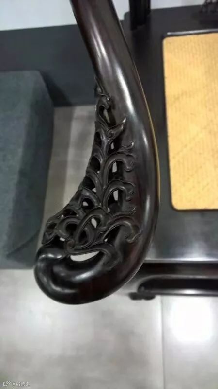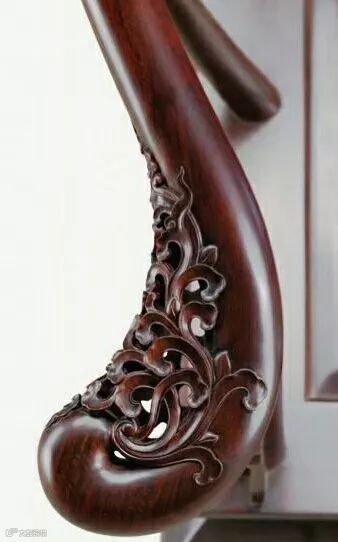 比较重要的是扶手和靠背板亮脚的雕花部位,那些雕花的边缘锋利、线条流畅的,就是好雕工。同时,这不仅对雕刻有一定的要求,对打磨要求也比较高。