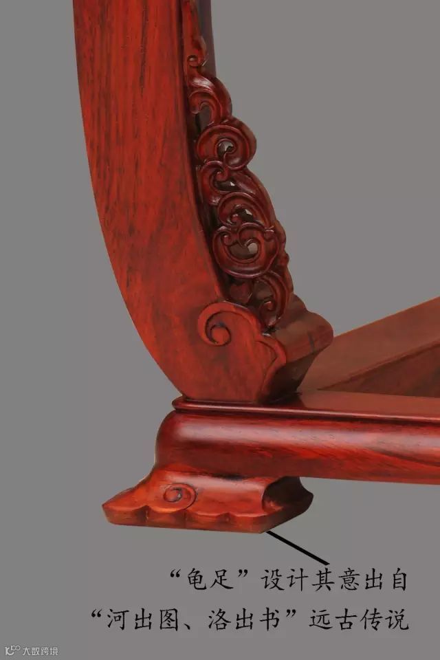 古人最朴素的宇宙观认为,大地是由一只巨大的神龟驮着,漂浮在浩瀚的大海上。皇宫椅效法天地之形,最底部的龟足象征着神龟的四足,恰如龙龟背驮着天地运行之意。
