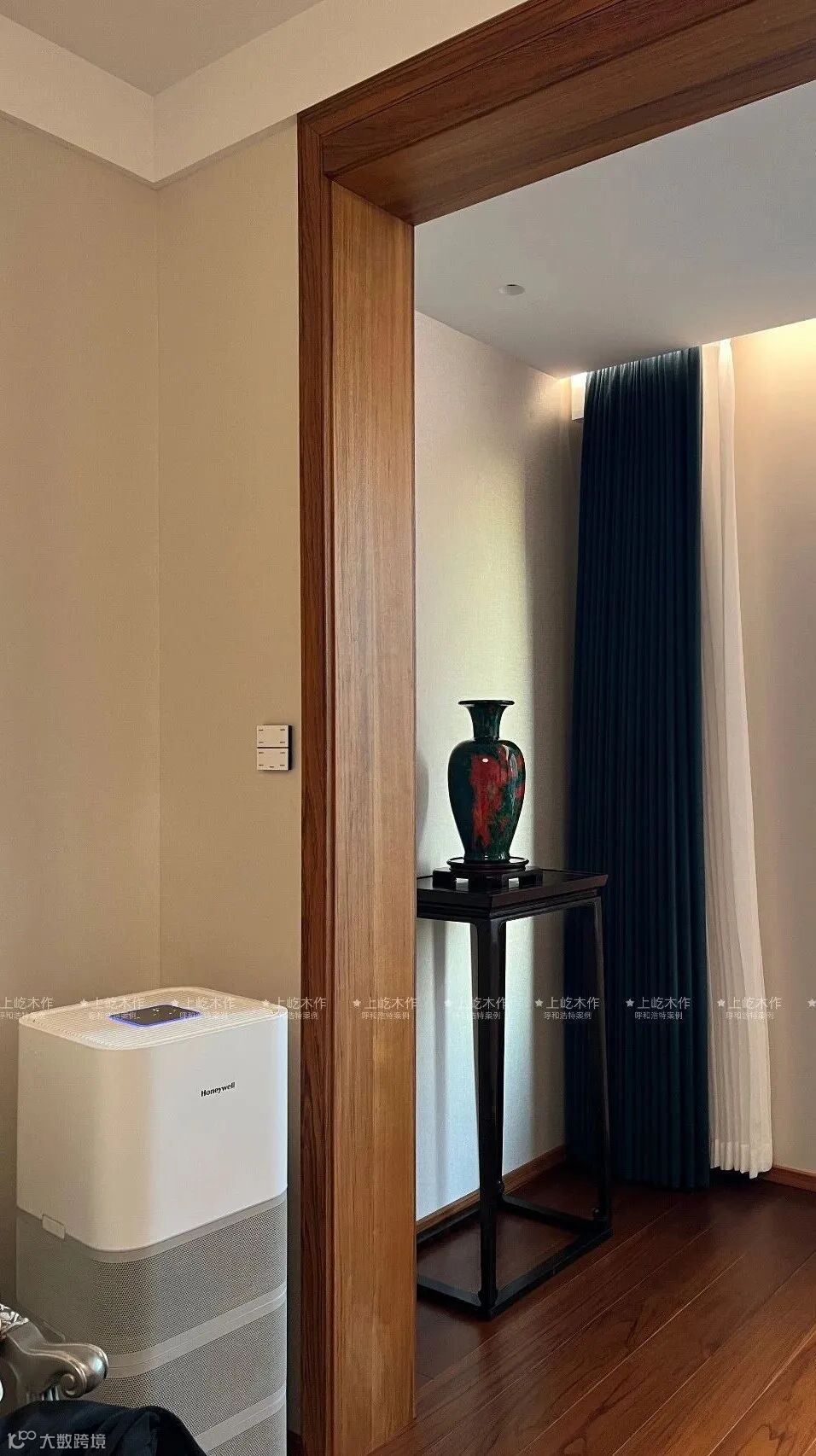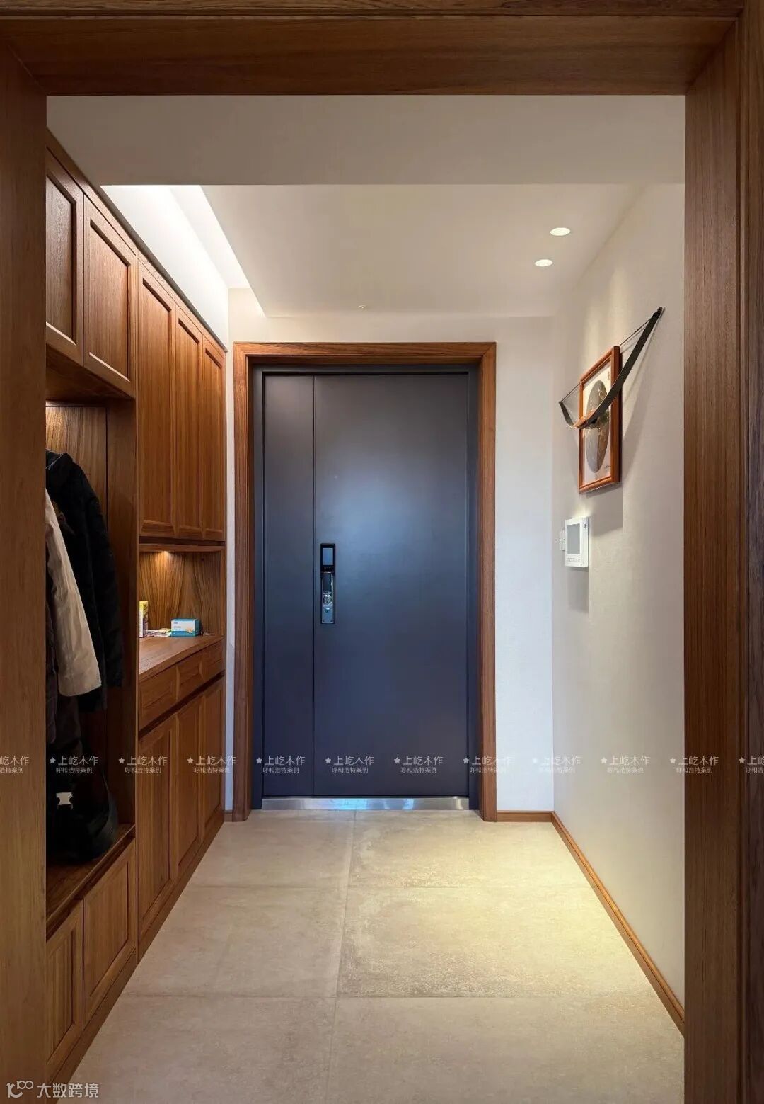 推开门的瞬间,缅甸柚木的温润质感扑面而来。利落的木作线条与开阔通透的空间相融,没有繁复堆砌,只有恰到好处的克制与舒展。阳光穿过廊道,漫过细腻的木饰面,让归家的每一步都浸润在松弛的暖意里。这不仅是入户的过渡,更是卸下都市疲惫、回归松弛生活的温柔序章。
