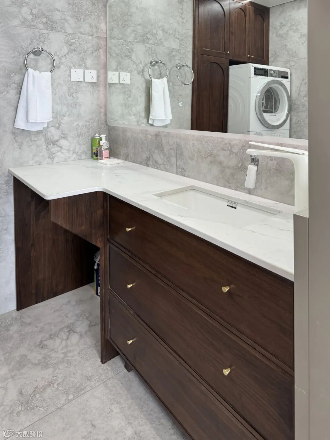 对面设置了大面积的镜子,空间更加显大。