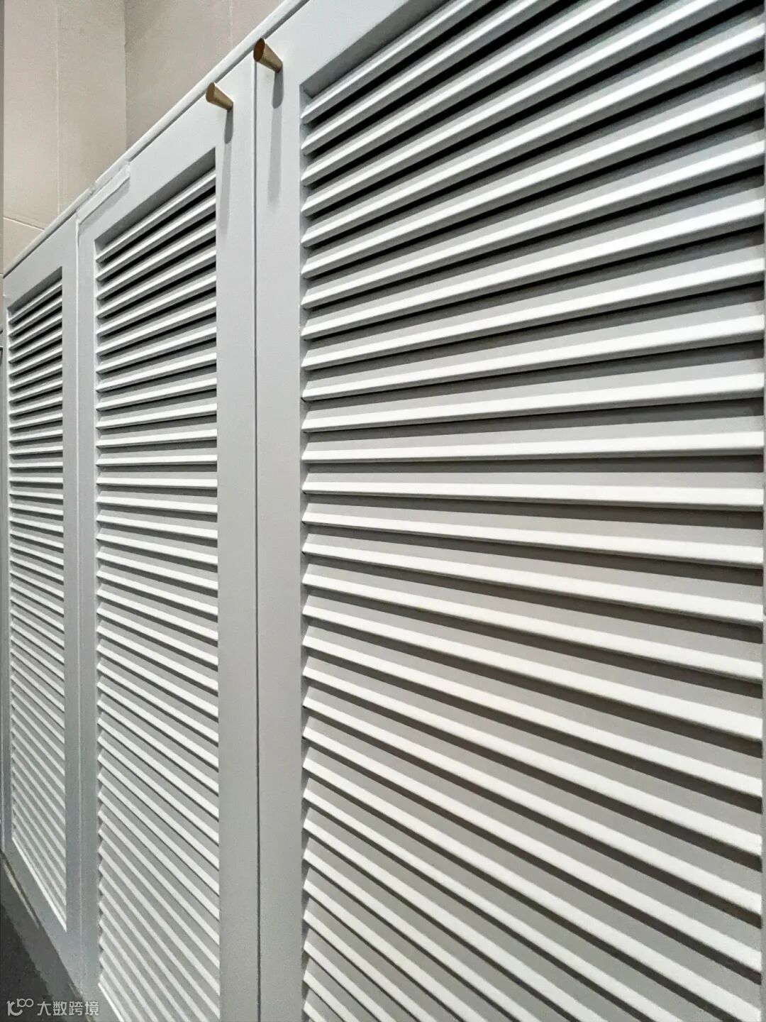 柜门采用了百叶门的造型,搭配金色的拉手,