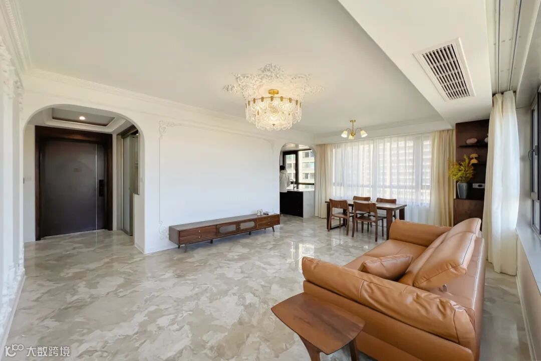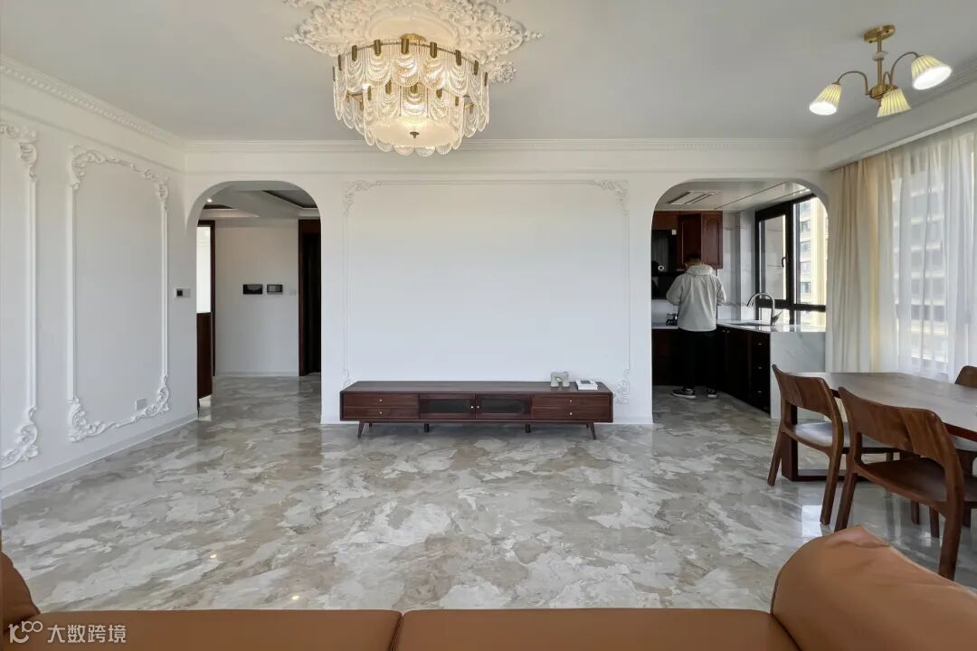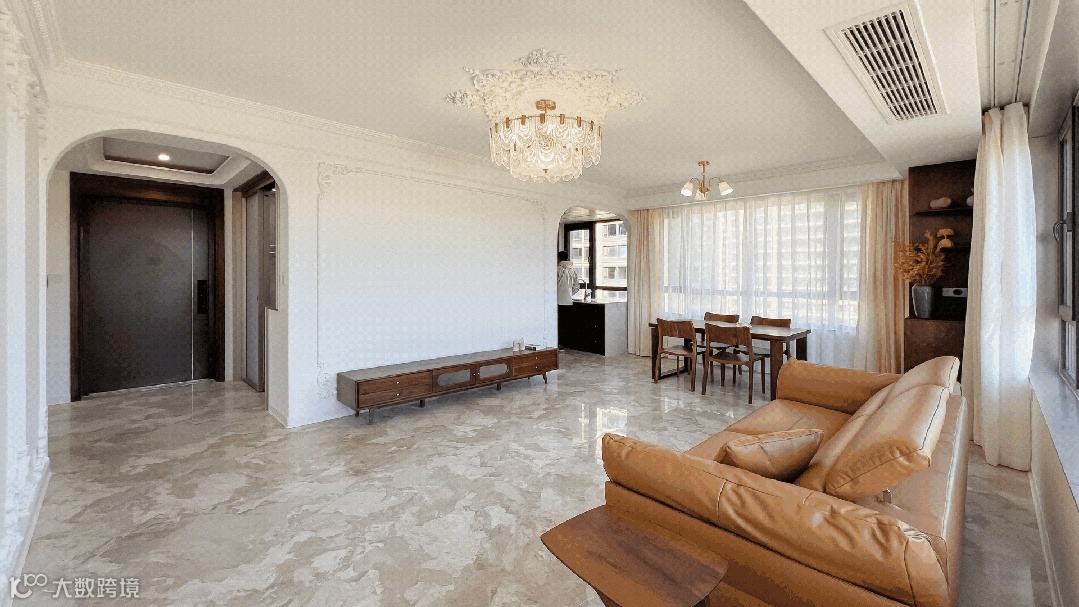 透过拱形门进入客厅,