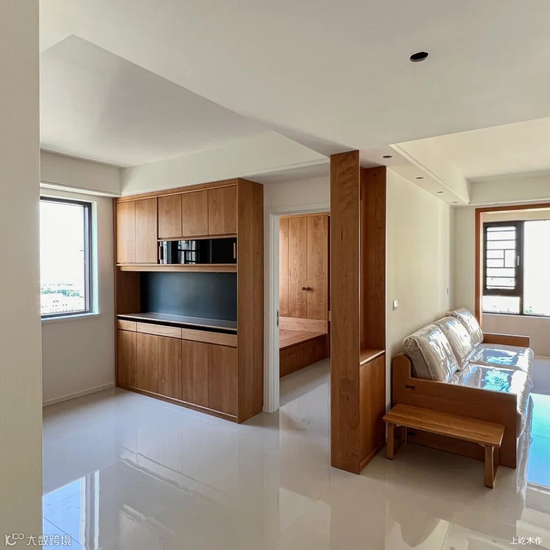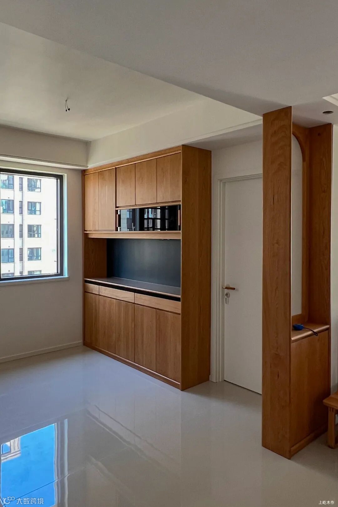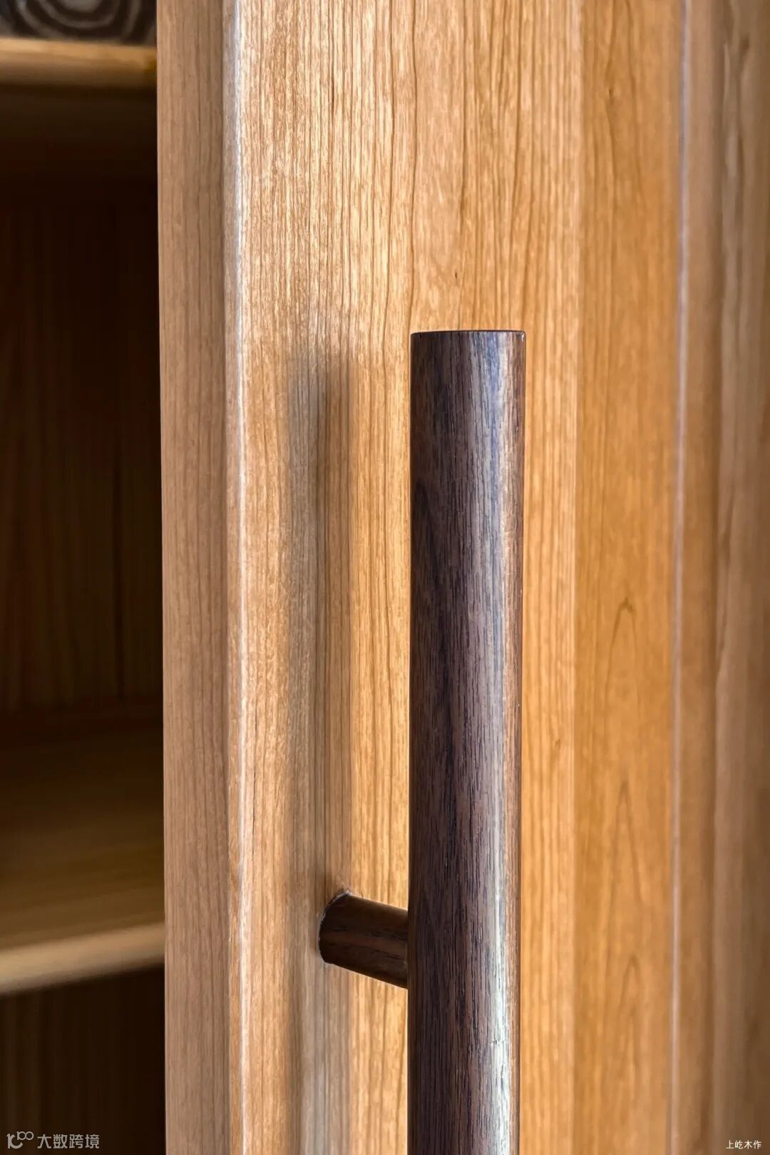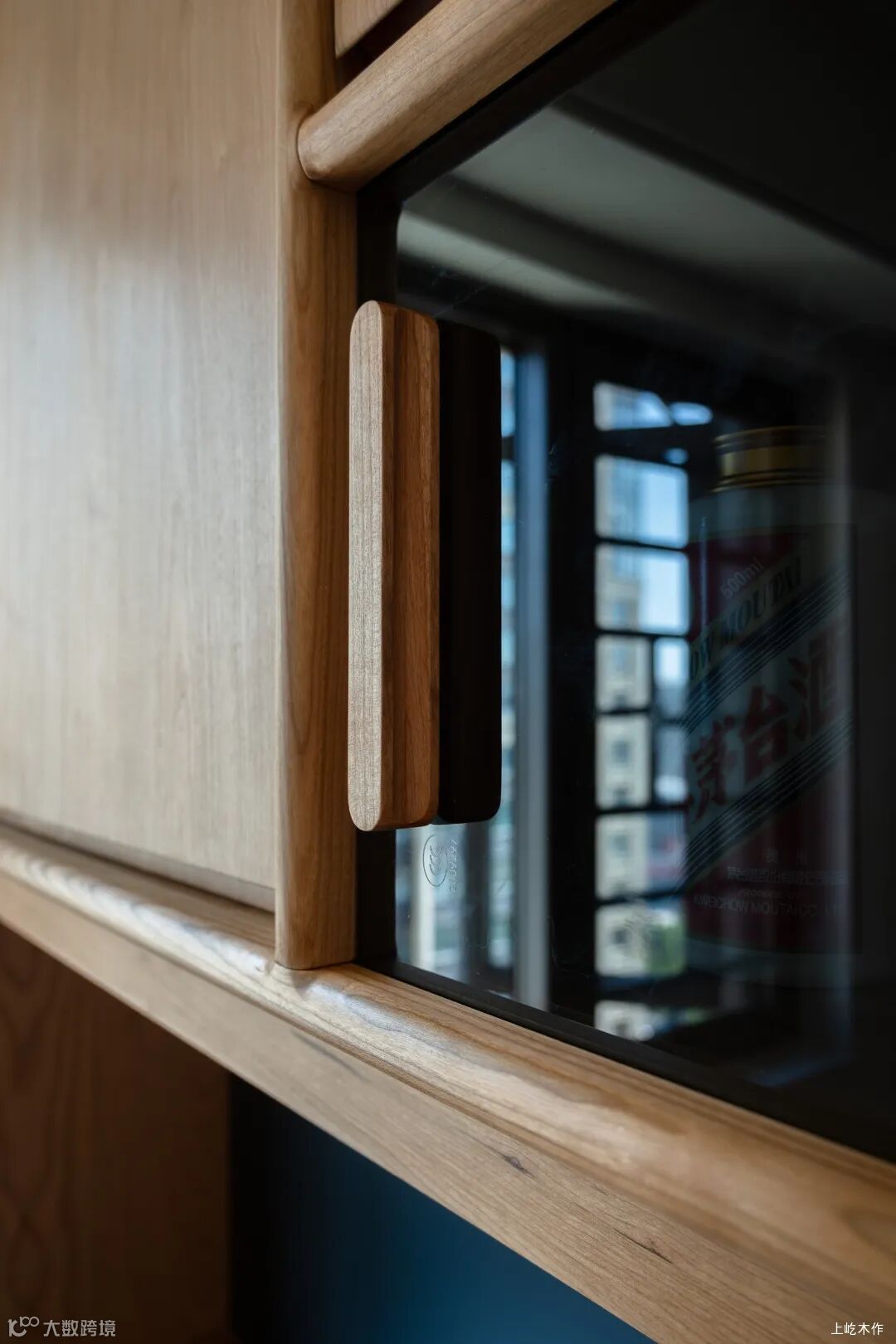 灰玻的小推拉门搭配木质的拉手,显得格外的精致