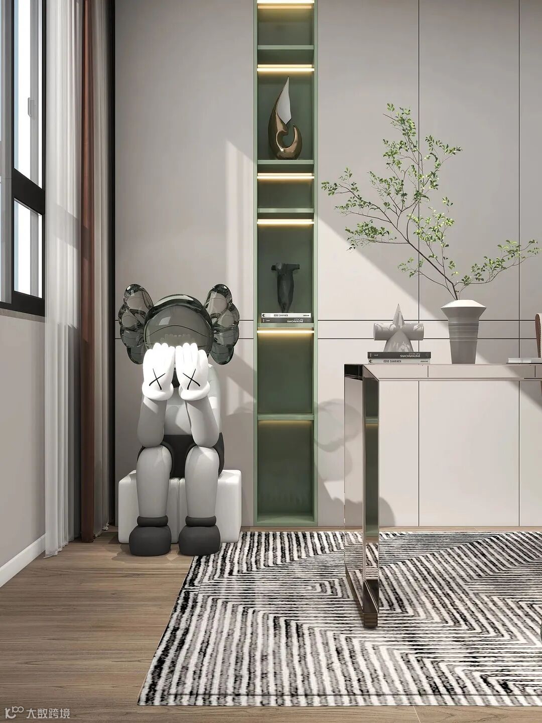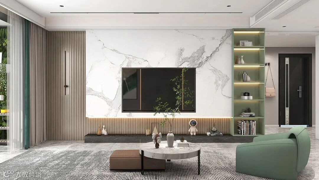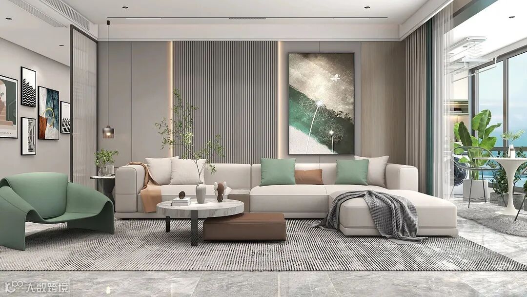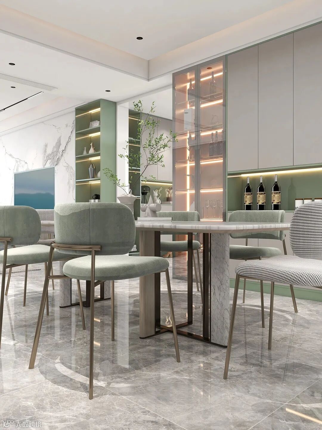 整体以简约的风格,并带有轻奢元素,选用绿色作为空间的点缀色彩,自然怡人又扣人心弦,形成舒适、欢乐、自然、环保的寓意。