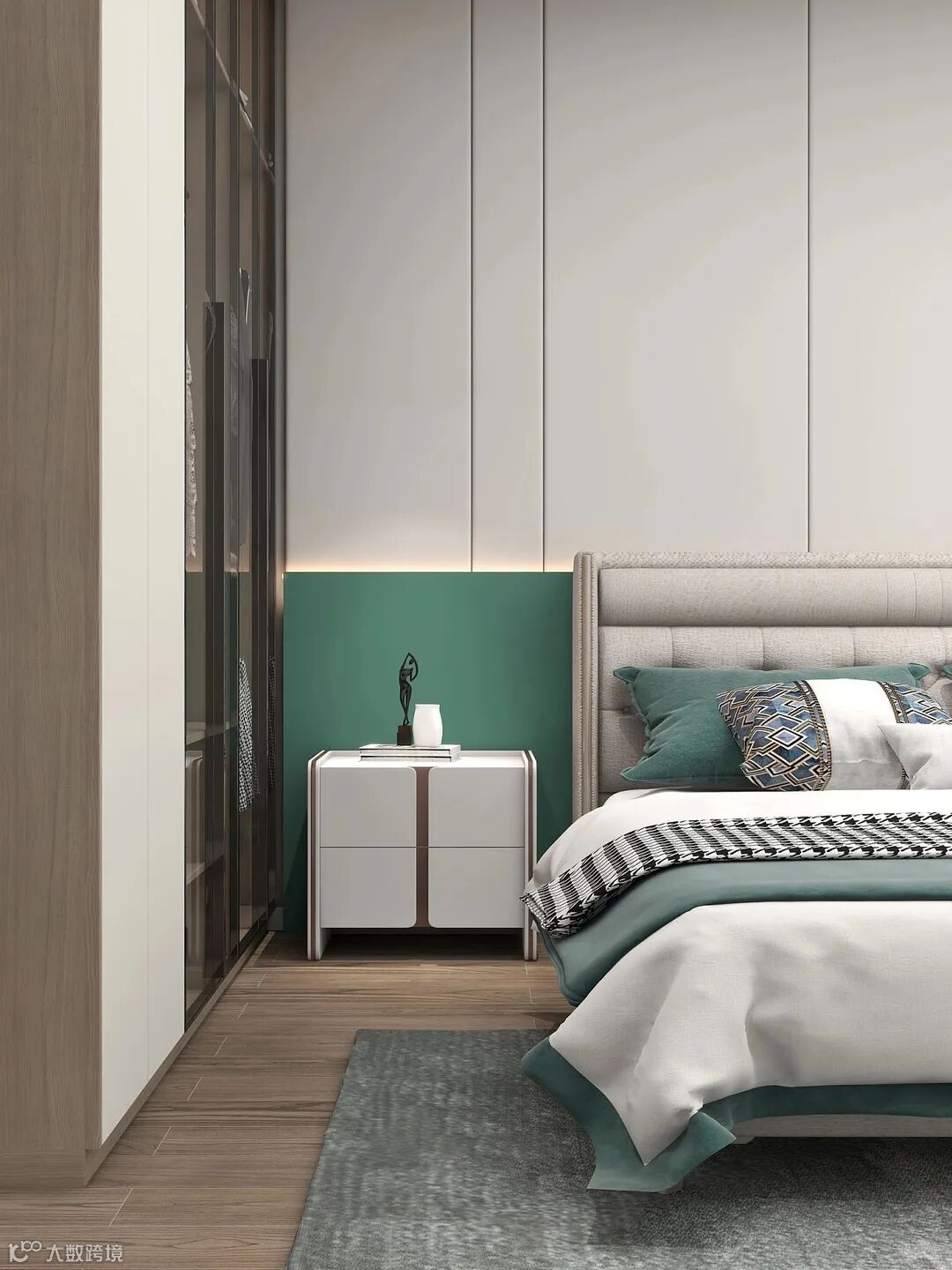薄荷绿唤醒一室活力,去感受清新配色在空间中的跳跃。玻璃门衣橱倒映生活的魅力,在方寸之间的精心布局,也能随性出发,按照喜欢的节奏度过温馨日常。