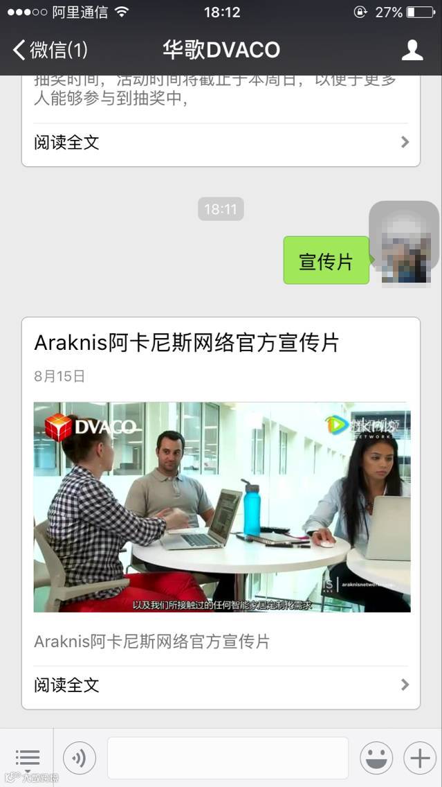 1、关注华歌微信公众号,在华歌微信公众平台对话框回复“宣传片”获取阿卡尼斯宣传片链接。