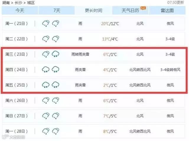 长沙本月23日可能会下雪?!
