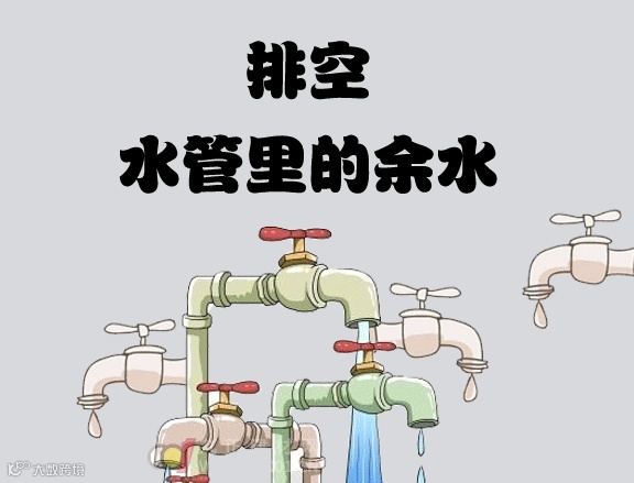 很多粗心的主人,出门几天,却未排空管道里的水,结果我就直接被冻住了,这样容易损坏我及损坏其它用水设备,正确的做法是:把管路总阀关闭,然后打开水龙头把水管里面的水排放干净。