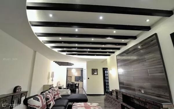 7、透过吊顶造型,可以把十字横梁纳入其中;或是运用多层次与曲线造型,透过吊顶层次,把横梁融入到吊顶造型中去。