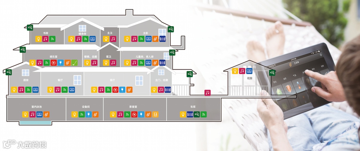 别墅的每个房型均有众多的各不相同的功能房间,如:客厅、餐厅、卧室、儿童房、健身房、桑拿房、家庭影院、雪茄吧、庭院、花园、车库等,这么多的房间就会有各种样式的照明设备,电动窗帘,热水循环系统,新风系统,净水系统,除尘系统,家庭影院系统,安防系统,背景音乐系统等等。按照传统的控制方式使用这些设备已经不符合现代科技生活的理念,我们需要对这些设备进行集中控制,让这些本互不相干的子系统按照主人的生活习惯和不同的生活场景自动的协同工作。共同营造一种尊贵,舒适,健康,节能的生活环境氛围。