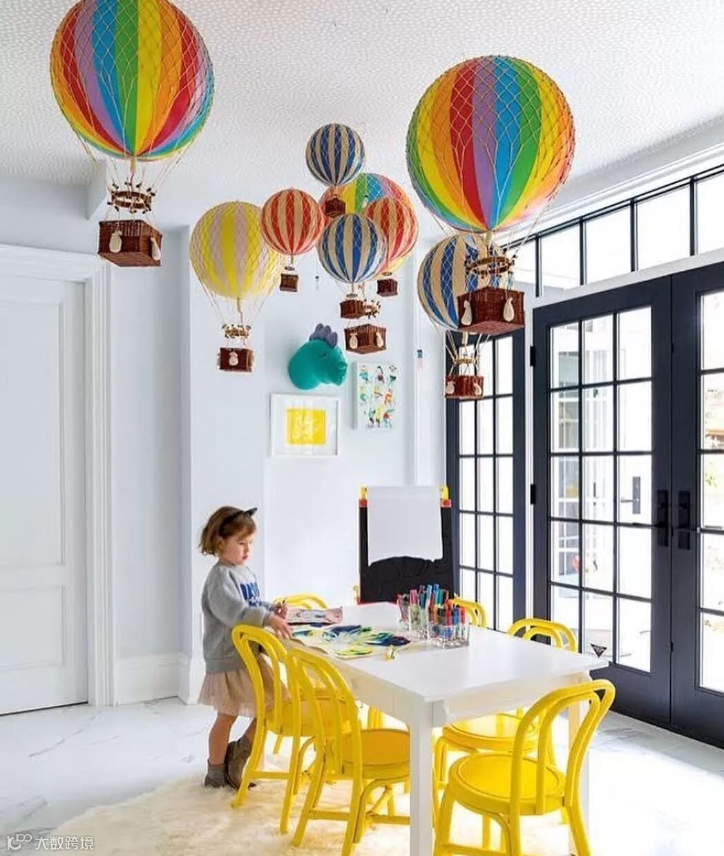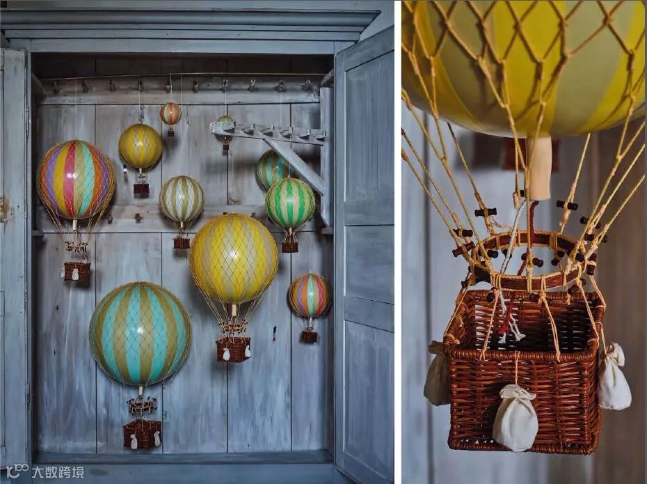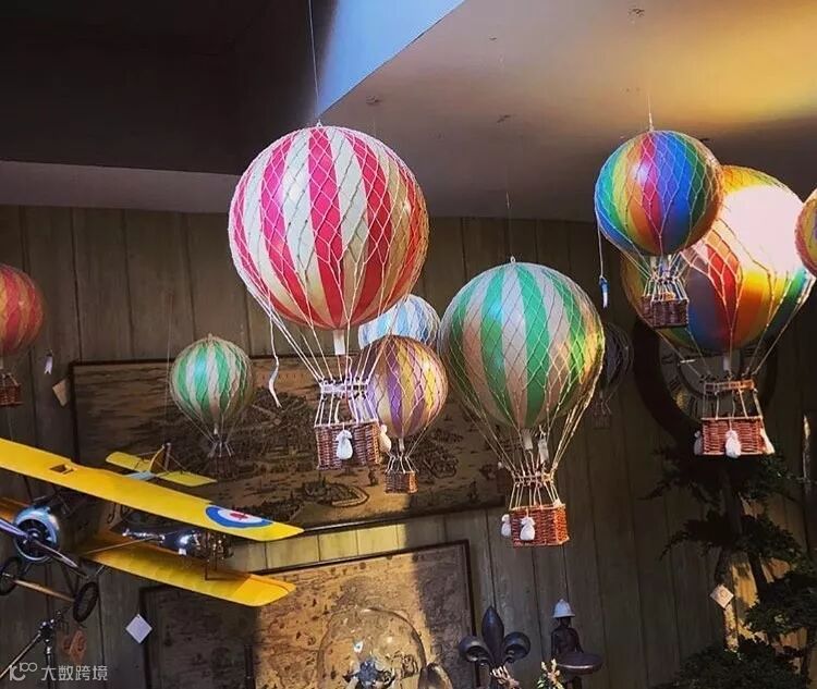 这是一百年前的空中运输方式之一,到现在居然用那么兴趣盎然的方式存在,是那么的特别!在家里,或在小孩房,或在你经营的场所,布置一些热气球吧,它们可以让你的想像起飞!