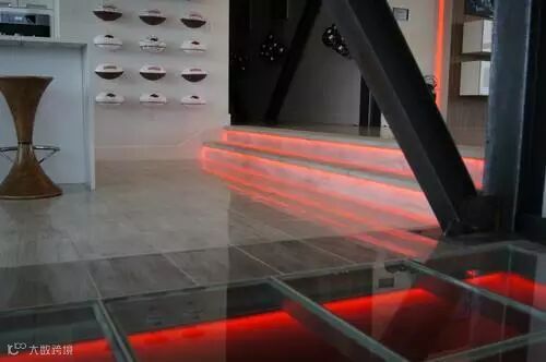 环顾整个顶层公寓,它曾经是两座分开的阁楼,而我们可以清楚的看到,几乎里面的所有一切都是定制安装的。走进阁楼你会被眼前的情景惊呆:走廊的木质天花板上安装有背光式灯条,红色灯光显然是为派对专门定制的;透过玻璃地板我们能看到地下的酒窖,天花板反射的红光照在地板上,瞬间有了尽情畅饮的冲动;接下来看到的是顶楼套房、带超大水晶吊灯的大浴室以及客厅内装有5台电视的影视墙。再加上房间内所有的自动化设备,如LED灯、电动窗帘、恒温器、音频系统和电动门锁,这简直就是电影中展示的“未来之家”。