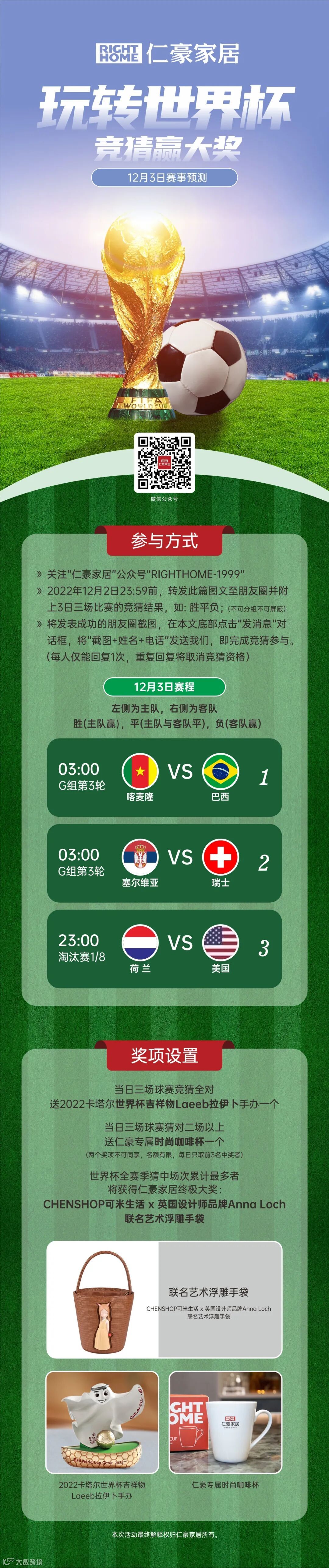 世界杯12月3日有奖竞猜 | 猜中三场轻松赢世界杯吉祥物手办可爱纪念品! 仁豪家居